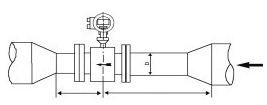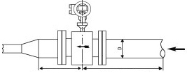 | 3.縮管的安裝: 對于大口徑小流量,縮管安裝,同時保證流量計的前直管 段≥10D,后直管段≥5D | | |||||||||||||||||||