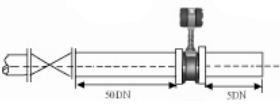 | 6.調節閥的安裝 如果流量計前后需要安裝調節閥,要保證流量計的前直管段≥25D,后直管段≥5D | ![]() | |||||||||||