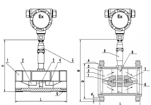 流體流經(jīng)液體渦輪流量計(jì)表體,由于葉輪的葉片與流向有一定的角度,流體的沖力使葉片具有轉(zhuǎn)動(dòng)力矩,克服摩擦力矩和流體阻力之后葉片旋轉(zhuǎn),在力矩平衡后轉(zhuǎn)速穩(wěn)定,在一定的條件下,轉(zhuǎn)速與流速成正比,由于葉片有導(dǎo)磁性,它處于信號(hào)檢測(cè)器(由磁鋼和線(xiàn)圈組成)的磁場(chǎng)中,旋轉(zhuǎn)的葉片切割磁力線(xiàn),周期性的改變著線(xiàn)圈的磁通量,從而使線(xiàn)圈兩端感應(yīng)出電脈沖信號(hào),此信號(hào)經(jīng)過(guò)放大器的放大整形,形成有一定幅度的連續(xù)的矩形脈沖波,可遠(yuǎn)傳至顯示儀表,顯示出流體的瞬時(shí)流量或總量。
