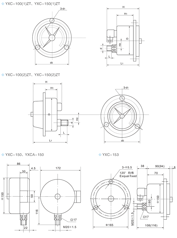 | YXC-150 | Φ150 | 78 | 40 | 17 | 165 | M20*1.5 | 5.5 | 113 | 150 | 20 | |