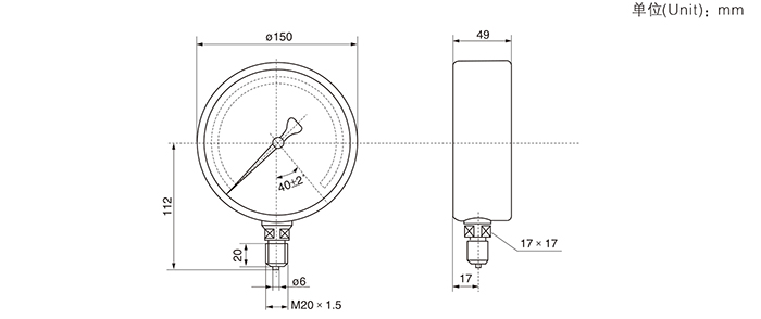 YTZ-150電阻遠傳壓力表適用于測量對銅及銅合金不起腐蝕作用的液體、蒸汽和氣體等介質的壓力。因為在儀表內部設置—滑線電阻式發送器,故可把被測值以電量值傳至遠離測量點的二次儀表上,以實現集中檢測和遠距離控制。此外,本儀表并能就地指示壓力,以便于現場工藝檢查。